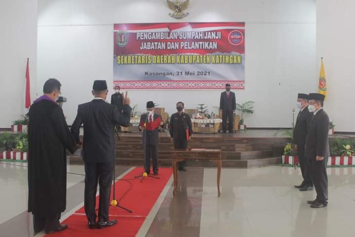 KATINGAN, KALTENGKITA.COM-Sekretaris Daerah Provinsi Kalimantan Tengah (Prov. Kalteng) Fahrizal Fitri menghadiri sekaligus memberikan sambutan pada acara Pengambilan Sumpah Janji Jabatan Sekretaris Daerah Kabupaten Katingan. Bupati Katingan Sakariyas melantik secara langsung Sekretaris Daerah Kabupaten Katingan, bertempat di Gedung Pertemuan Salawah, Kasongan, Senin (31/5/2021).