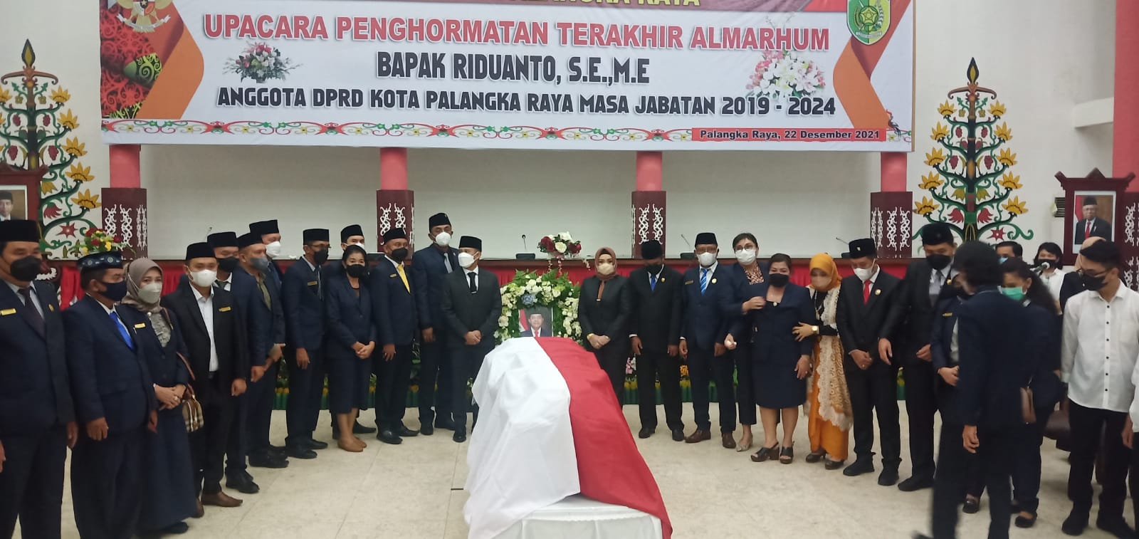PALANGKA RAYA, KALTENGKITA.COM – Jajaran DPRD Kota Palangka Raya memberikan penghormatan terakhir untuk almarhum Riduanto. Penghormatan terakhir pada upacara pelepasan itu berlangsung di ruang rapat paripurna DPRD setempat pada Rabu (22/12/2021).