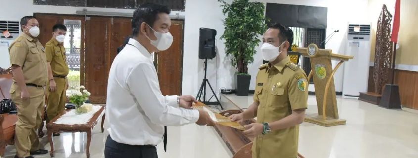 PALANGKA RAYA,KALTENGKITA.COM-Wali Kota Palangka Raya, Fairid Naparin menyerahkan Surat Keputusan Pengangkatan Pegawai Pemerintah dengan Perjanjian Kerja di Lingkungan Pemerintah Kota Palangka Raya dan Penandatanganan Perjanjian Kerja Guru Tahap I dan II Tahun Anggaran 2021.