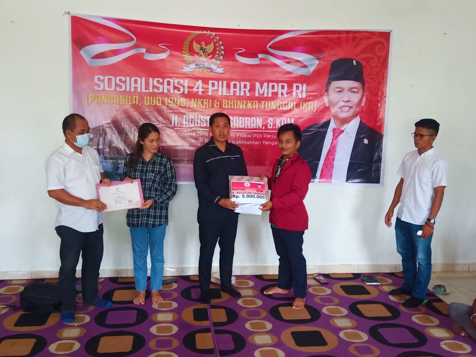 Untuk narasumber dalam kegiatan tersebut yakni Jhon Retei Alfri Sandi yang merupakan akademisi dari Universitas Palangka Raya. Selain itu Agustiar Sabran juga memberikan bantuan sosial berupa uang tunai sebesar Rp5 juta untuk PMKRI cabang Kota Palangka Raya.