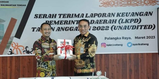 PALANGKA RAYA, KALTENGKITA.COM – Wali Kota Palangka Raya, Fairid Naparin menyerahkan langsung Laporan Keuangan Pemerintah Daerah (LKPD) Tahun Anggaran 2022 (UNAUDITED), kepada Badan Pemeriksa Keuangan Republik Indonesia (BPK RI) Perwakilan Kalimantan Tengah, Jumat (17/3/2022).