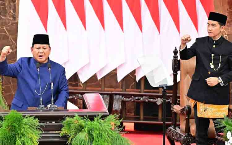 JENDERAL TNI (Purn) Prabowo Subianto dan Gibran Rakabuming Raka resmi mengemban tugas sebagai Presiden dan Wakil Presiden Republik Indonesia masa jabatan 2024 – 2029. Keduanya dilantik dalam Sidang Paripurna Majelis Permusyawaratan Rakyat (MPR), bertempat di Gedung Nusantara MPR/DPR/DPD RI, Jakarta, Minggu, 20 Oktober 2024.