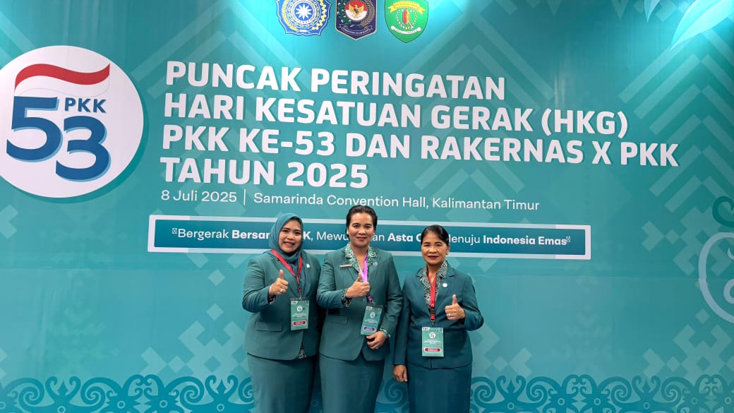 PURUK CAHU, KALTENGKITA.COM – Tim Penggerak Pemberdayaan dan Kesejahteraan Keluarga (TP PKK) Kabupaten Murung Raya meliputi Ketua TP PKK Ny. Warnita Heriyus, Wakil Ketua I TP PKK Dina Maulidah dan Wakil Ketua II TP PKK Sri Karyawati menghadiri acara puncak Peringatan Hari Kesatuan Gerak Pemberdayaan dan Kesejahteraan Keluarga (HKG PKK) ke 53 sekaligus Rapat Kerja Nasional (Rakernas) Ke-X PKK tingkat nasional di Pillanary Hall Sempaja Samarinda, Provinsi Kalimantan Timur (Kaltim), Selasa (8/7/2025).