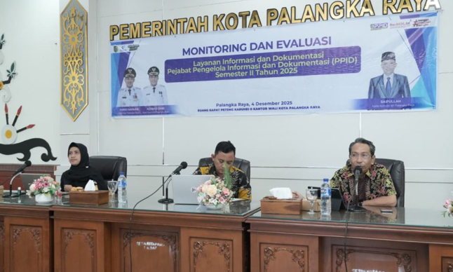 PALANGKA RAYA, KALTENGKITA.COM – Dinas Komunikasi, Informatika, Statistik, dan Persandian (Diskominfo) Kota Palangka Raya melaksanakan Monitoring dan Evaluasi (Monev) Layanan Informasi dan Dokumentasi sebagai upaya meningkatkan kualitas keterbukaan informasi publik di lingkungan Pemerintah Kota Palangka Raya. Kegiatan tersebut berlangsung di Aula Peteng Karuhei II, Kantor Wali Kota Palangka Raya, Kamis (4/12/2025).