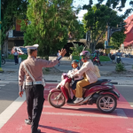 Anggota Satlantas Lakukan Pengaturan Lalu Lintas demi Kamseltibcarlantas